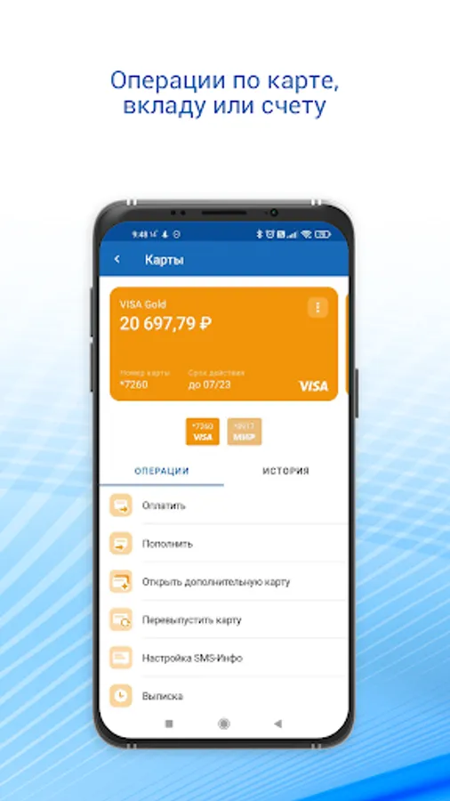 Pay for mobile services, Internet, TV, telephony, housing and communal services, etc. - more than 2000 services in total. Use the QR code reader function. Transfer money within the Bank by phone, card or account number without commission, replenish accounts and make transfers to other banks using full details, as well as using the Quick Payments System. Open deposits for savings and accumulation of funds. Issue and reissue cards, as well as open additional cards. Connect and disconnect the SMS info service. Exchange currencies at favorable rates. Perform fast and convenient repayment of the next payment and early repayment of the loan. You won't miss a maturity date - just look at the contract card. Create templates for frequently performed operations and manage them in the application. Enable or disable PUSH notifications. Change your PIN, block or unblock cards.