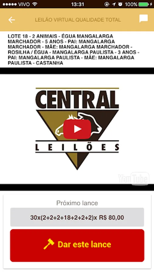 The Central Auctions strongly operates in the agribusiness market since 1997, promoting special periodic auctions beef cattle as well as several players auction and arrays of various breeds, sheep, mules and horses.