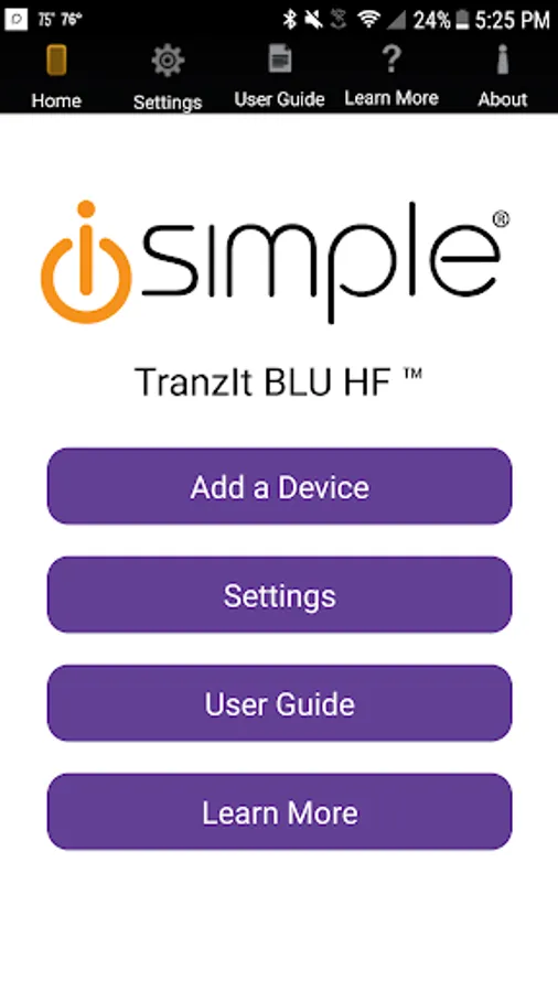 The TranzIt BLU HF App is used to remotely adjust certain, otherwise inaccessible, system settings, as well as providing users convenient access to the product’s user guide and other relevant online resources.