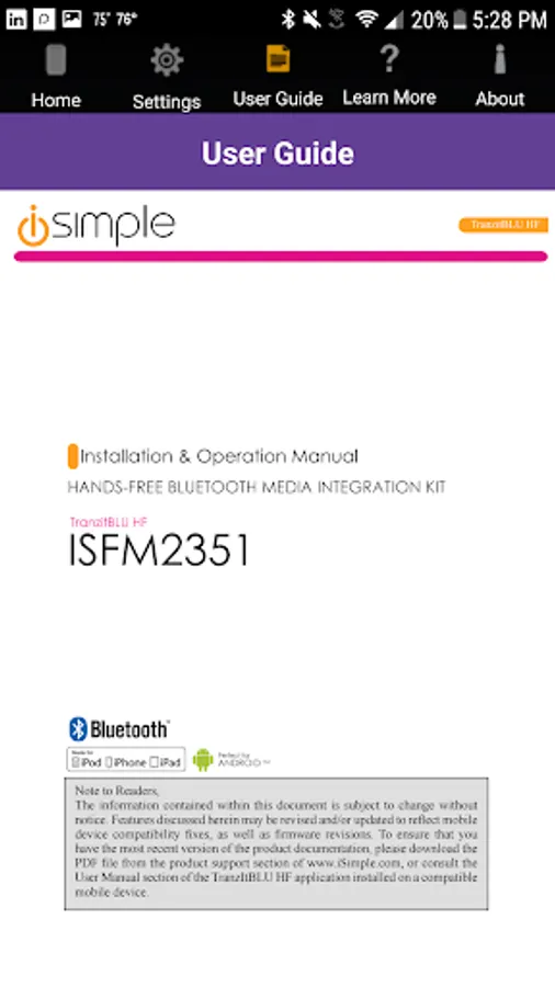 The TranzIt BLU HF App works in conjunction with the ISFM2351 hide-away/behind-the-dash Bluetooth audio module from iSimple, providing users the ability to stream their smartphone’s music/audio, and make hands-free calls through their current radio.