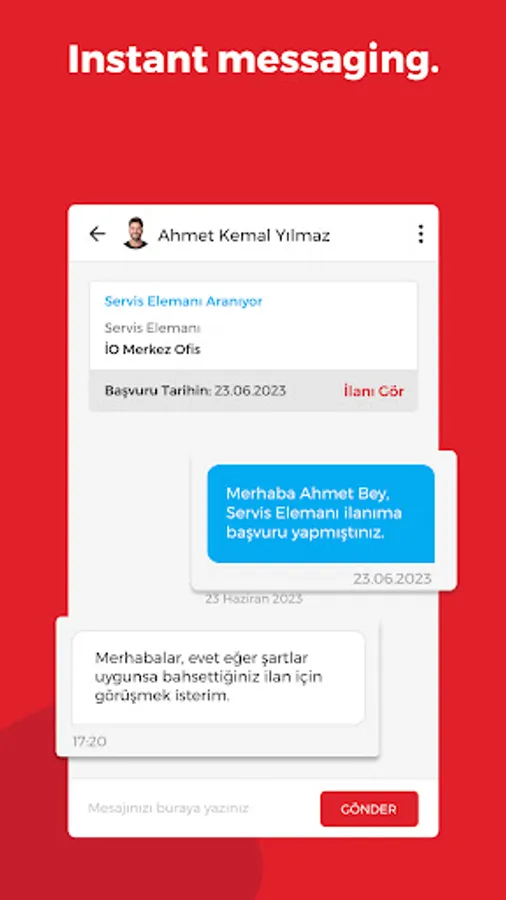 You can communicate with suitable candidates remotely using the instant messaging feature.