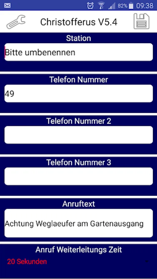 With this free app you configure the station Christofferus-Weglaufschutzsystems. For example, The following settings are possible:
