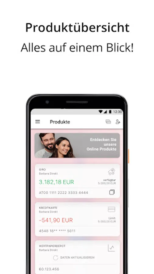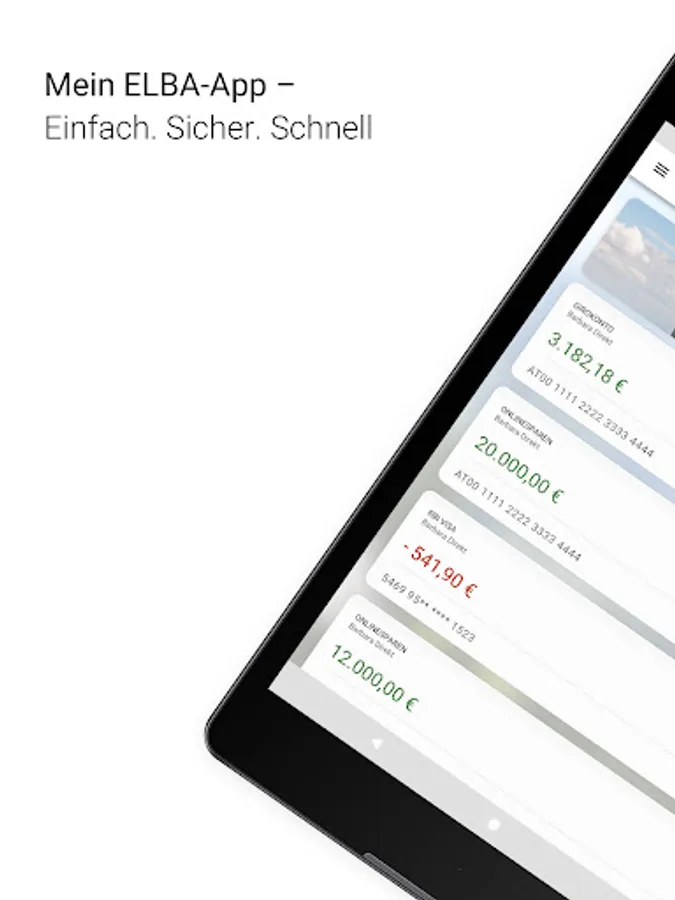 The Mein ELBA app with pushTAN is up-to-date mobile banking. You can keep an eye on your finances on the go at all times, all in a single app: