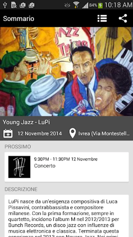 Ivrea Jazz Club, active for 30 years in Ivrea, organizes the programming of the Jazz Club, with whom he organized concerts, exhibitions and courses in the area including festivals such as the Open Jazz Festival (formerly Euro Jazz Festival d'Ivrea) The competition Ivrea Music, Stage and organizes educational seminars in schools and within the grounds has its own school ... musicians known for years in Italy and abroad both in that Jazzy pop music, rock, pop and classical.