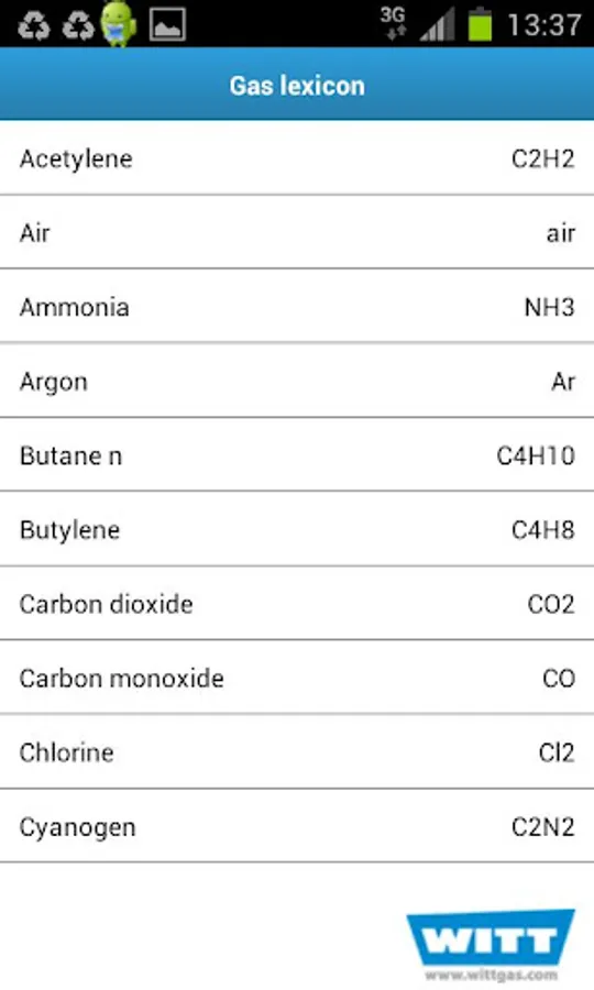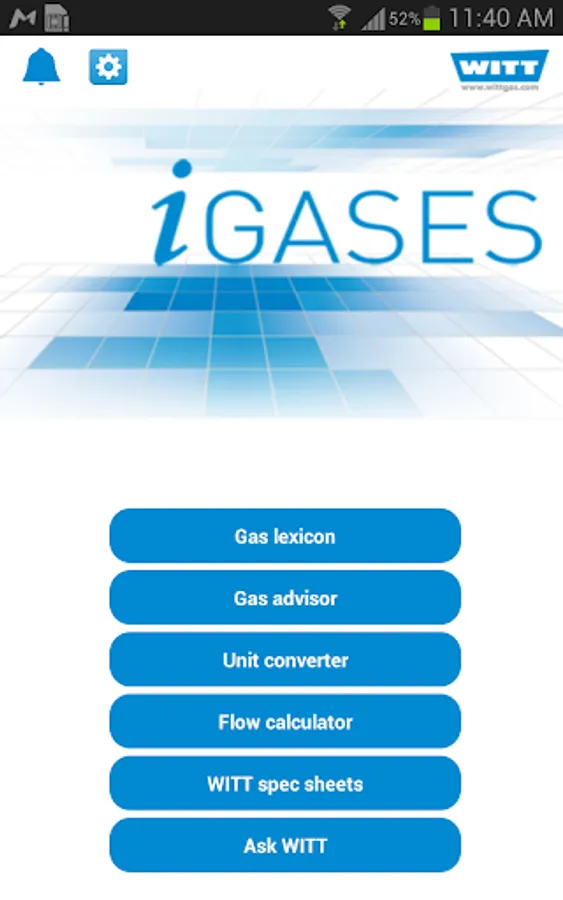 iGASES from WITT serves as a gas lexicon or gas guide for all current technical gases, including important physical-chemical characteristics such as density, steam pressure, ignition range or thermal conductivity as well as safety information.