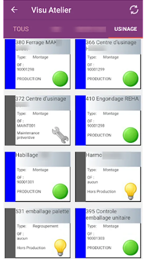 The application allows to display, by Workshop and in real time, the state of the machines in a factory: