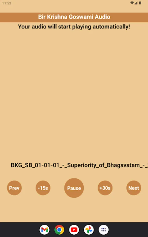 Experience the spiritual teachings of Bir Krishna Goswami with our simple and intuitive app. We provide a seamless listening experience with a vast library of audio lectures directly sourced from ISKCON Desire Tree.