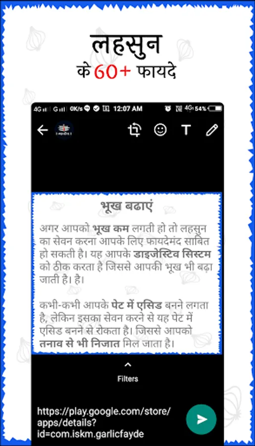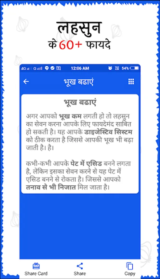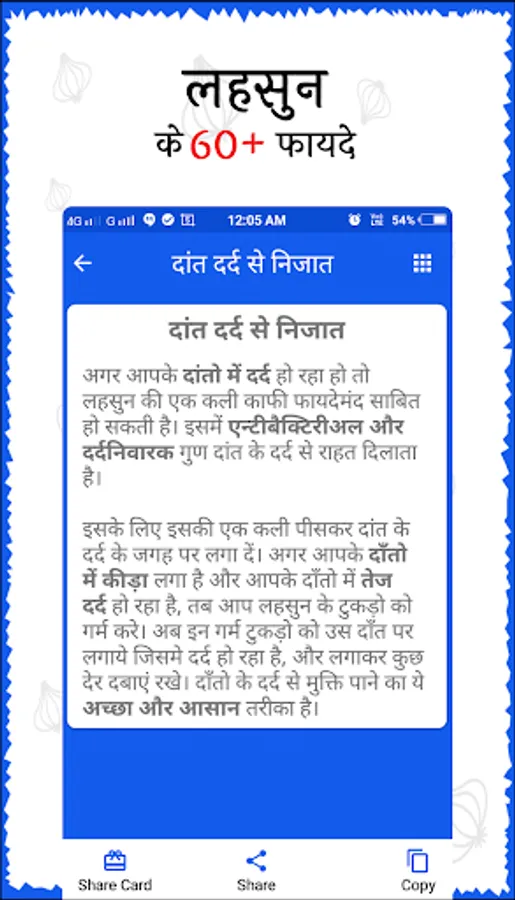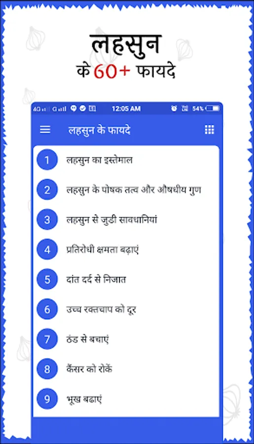 - एप में लहसुन के 60+ फायदों को विस्तार से बताया गया है।