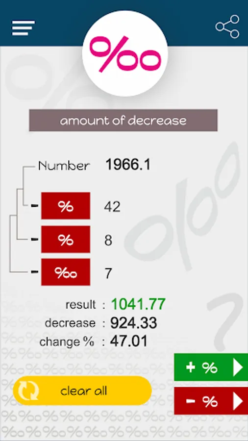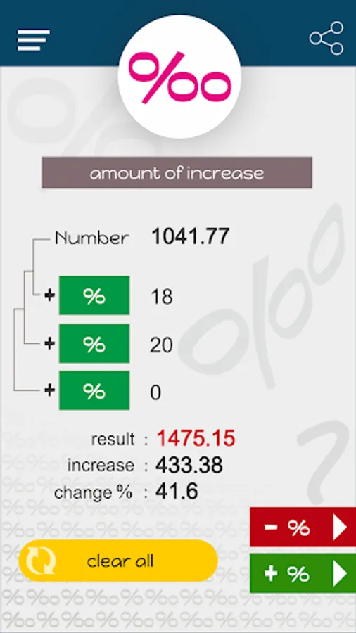 You can calculate the increase amount in the continuation of the number you have calculated the discount amount, share the result screen on social media channels or send it to a friend.