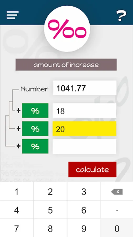 Calculates by adding the percentage and thousandth amount added on the number. You can calculate by adding three different rates at the same time.