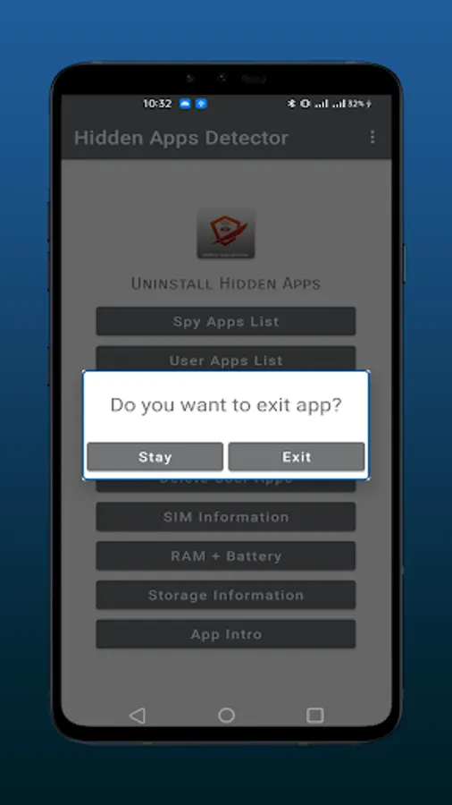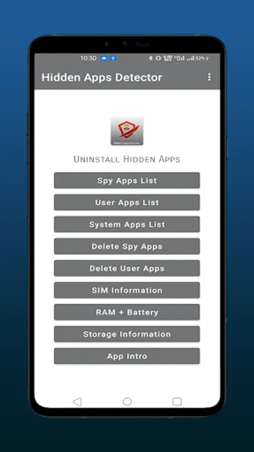 Hidden app detector for android will detect hidden apps install in your mobile phone. easy to use just install this hidden spy application detector for android and start detecting hidden application or start detecting hidden software app. this apps works as hidden software application detector. Find Hidden Apps, Spy Apps allows you to find hidden or malicious applications hidden spyware removal for android malware removal for android games with or without an icon in the application list or in the android phone. malicious binary system that does not show its icon. It is recommended to not only remove spyware, malware but also delete the apps you don't use to boost Your device performance