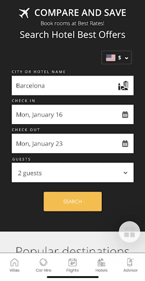 You can also Compare Hotel Room rates at thousands of hotels worldwide. Select the destination or Hotel name and compare and book at Best Rates with islaGO App in your phone