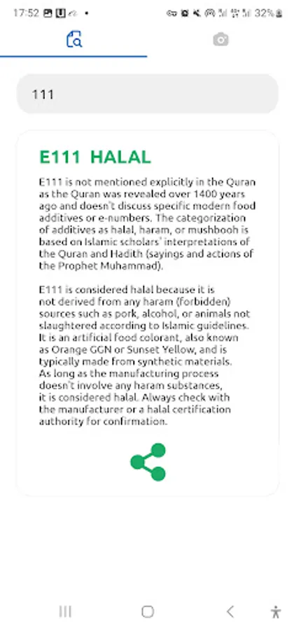 Effortlessly share information about E-numbers and additives with your friends and family using our user-friendly share button. It's also very easy to share the information with friends and family, making it simple for everyone to stay informed about Halal dietary choices.
