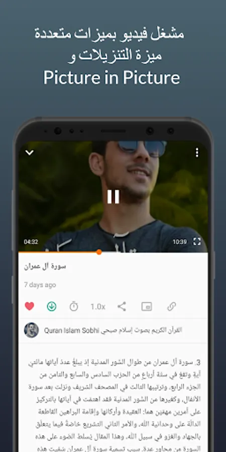 - The application of the Holy Quran Audios with the voice of the reader Islam Sobhi supports the feature of the ability to download and listen to the Holy Quran Audios without the presence of the net.