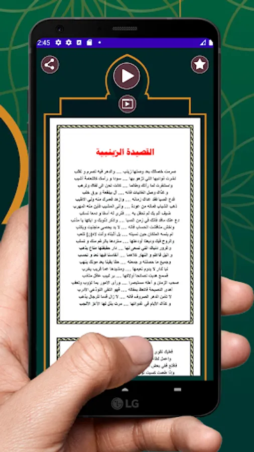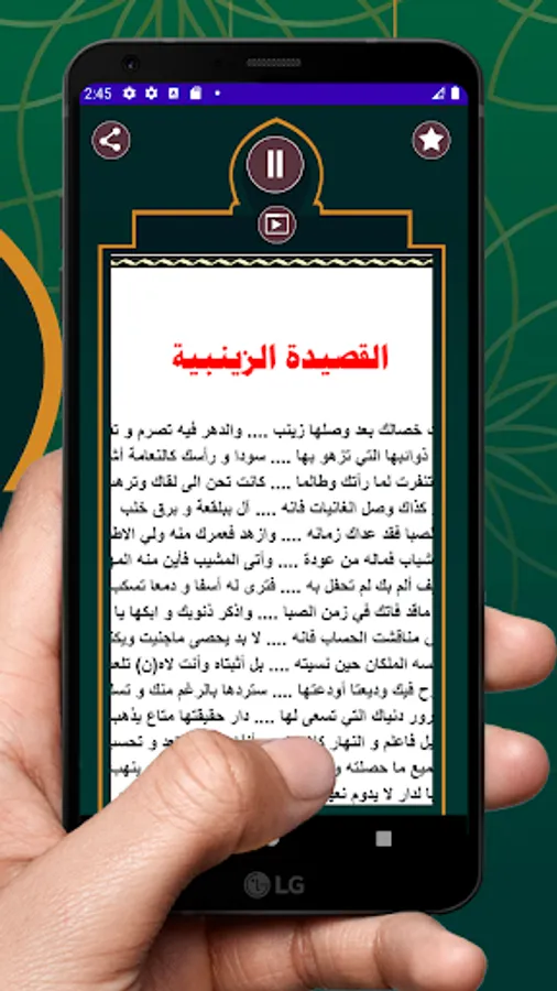 The application displays the Zainabiya poem before you, with the ability to read, listen, or both