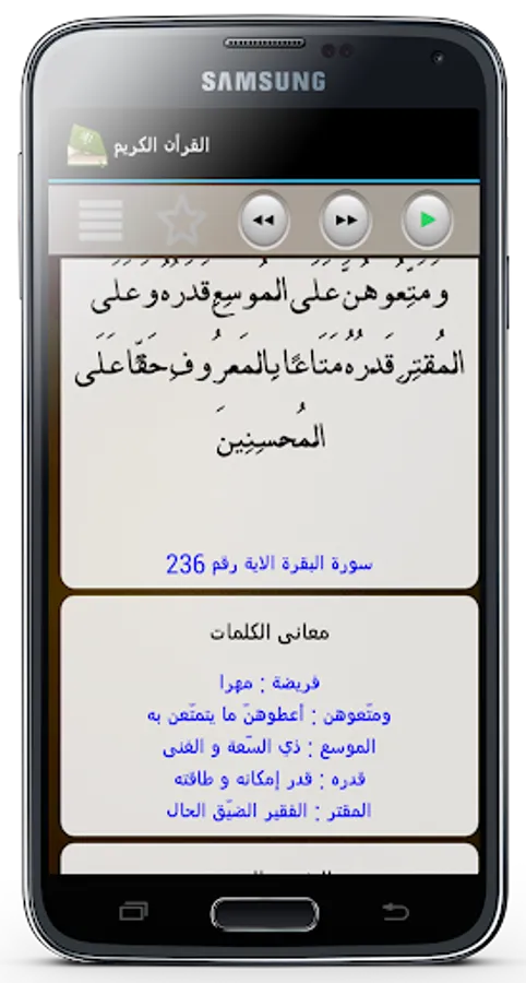 - You can save the recitation for more than 45 reader and then listen to them without the need for Internet connectivity
