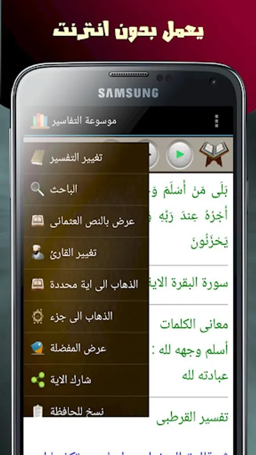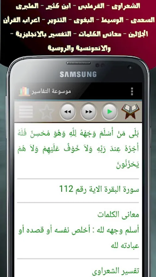 Encyclopedia of interpretations of the largest and most comprehensive interpretation of the application of the Qur'an to contain 13 interpretation of the Holy Qur'an with meanings of words in addition to the possibility of their use without connectivity to the Internet with the possibilities of multiple search and many other features