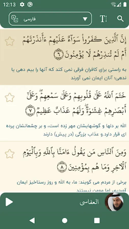 The Quran with literal audio translation is a complete Quran with many features and functionality at the same time as simplicity. In this Quran, you can benefit from the feature of word-for-word translation, which is written under each Quranic word, this is the feature of this application. distinguishes it from other Quranic epics.