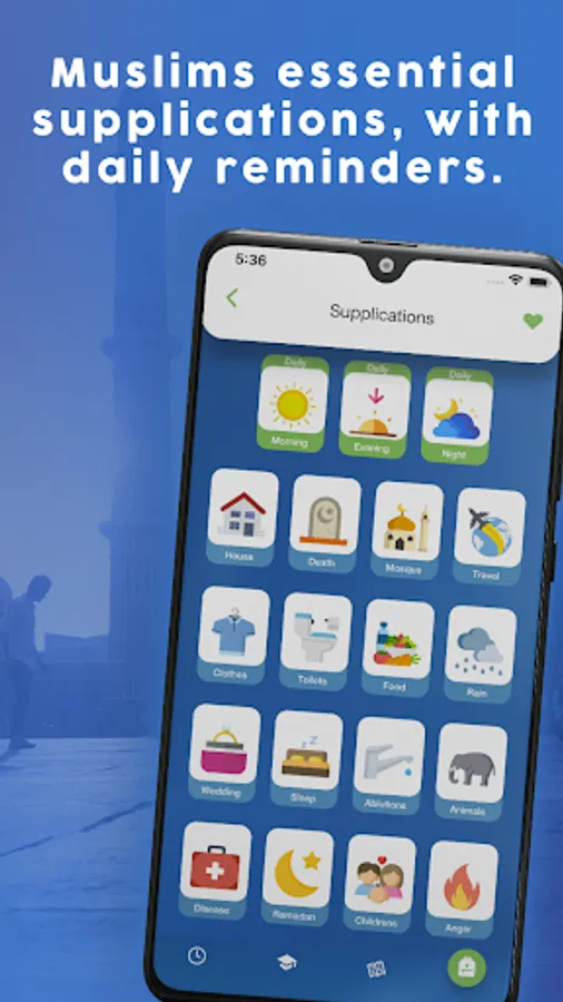 And a selection of supplications from the Holy Qur'an and the sunnah, with daily notifications.