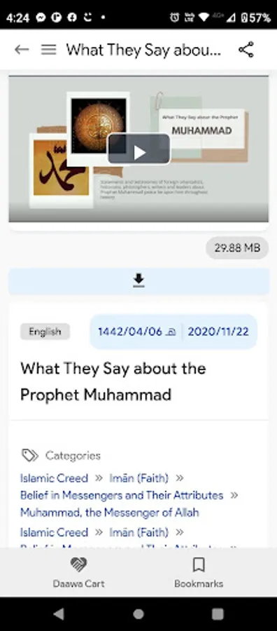 It contains thousands of Islamic books, articles, audios, videos and more.