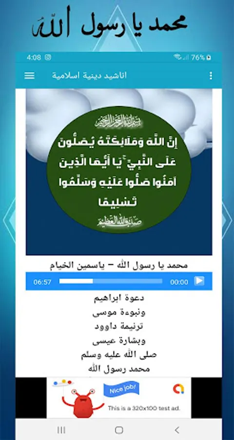 Muhammad, O Messenger of God - Pray, Pray on the Messenger of God - Do you have a secret with God Al-Afasy - Song of you, come back to my mother (on the occasion of the Mother’s Day) - A song that has risen in my eyes - Mawla - Teacher - is the Qur’an - Your heart is nostalgic, prophet - We commend prayer Ali al-Nabi - O Salt Darna - We commend the joy of a human being Alafasy - A song of divine broad generosity - A song for the sake of the Prophet Muhammad Al-Kahlawi - O Prophet, Peace be upon you: The vocalist Maher Zain and other songs and beautiful old and new songs