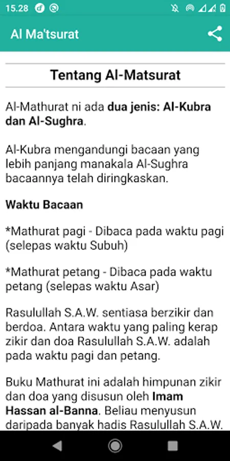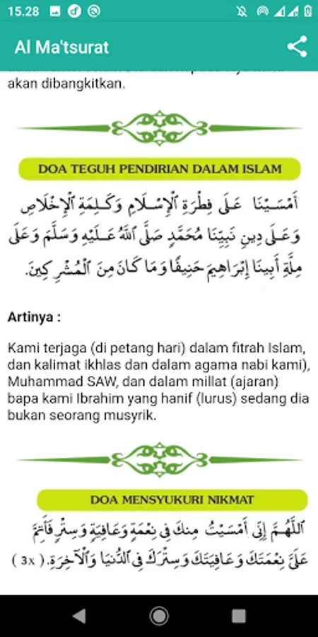 A collection of morning and evening dzikir Al Ma'tsurat arranged in an Android application to make it easier for us to practice dhikr in the morning and dzikir in the evening.