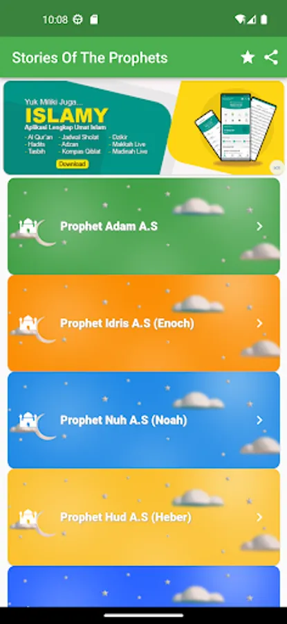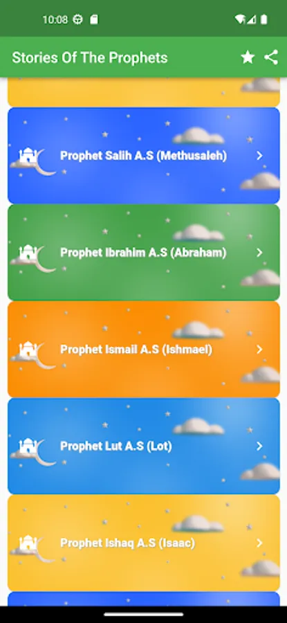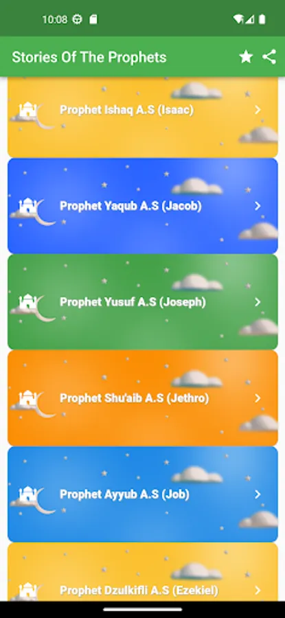 In this application, a list of stories from the life of the prophets are presented. The stories are,