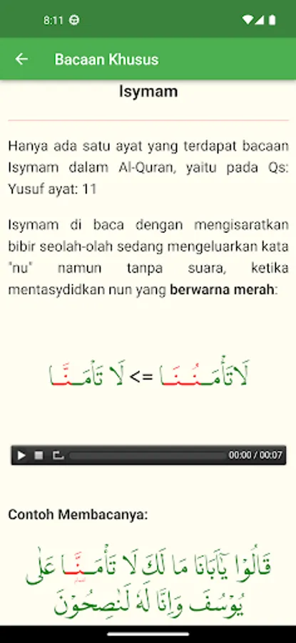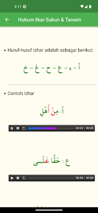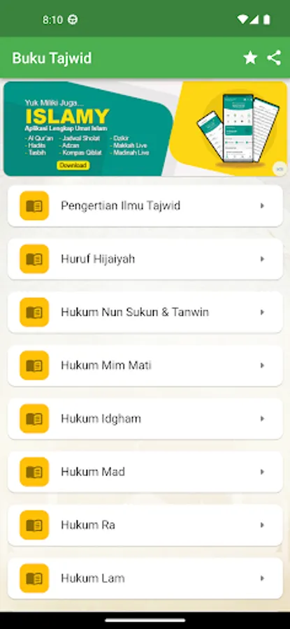 This application is completely offline and does not need an internet connection at all to use it. Made with an attractive design, but still simple and easy to use. Download it for free, and learn various tajwid sciences easily through your smartphone.