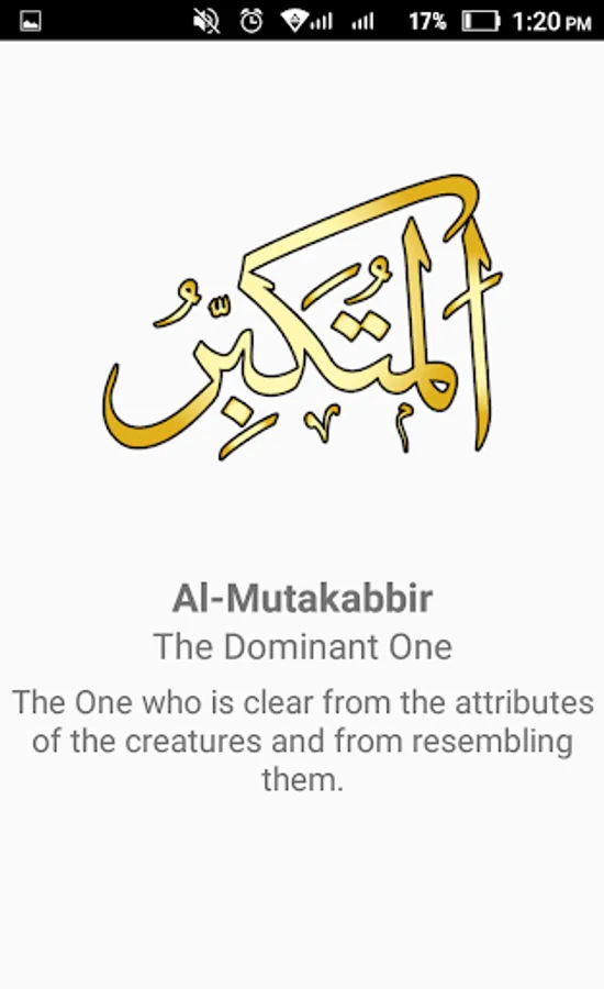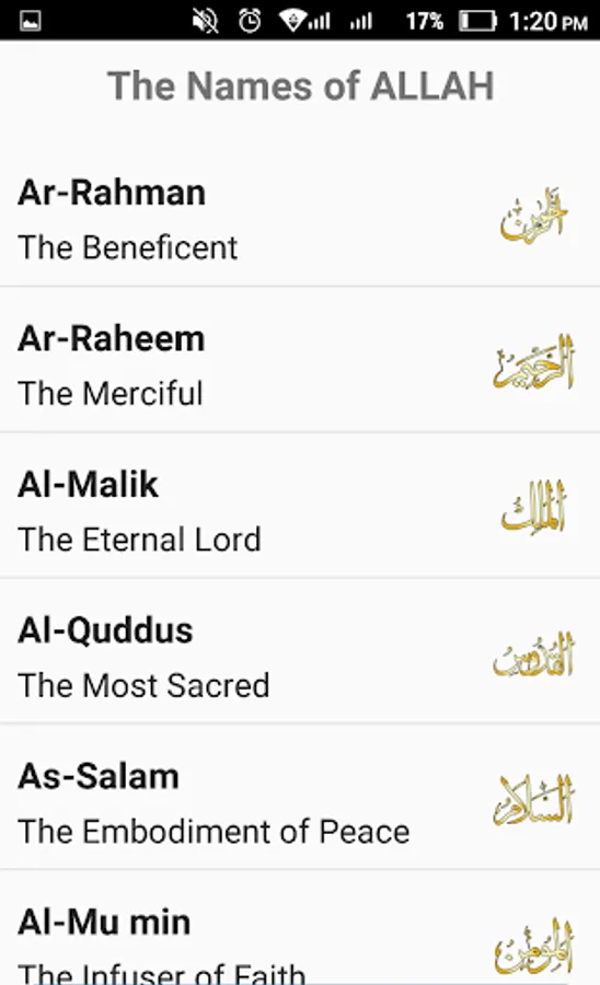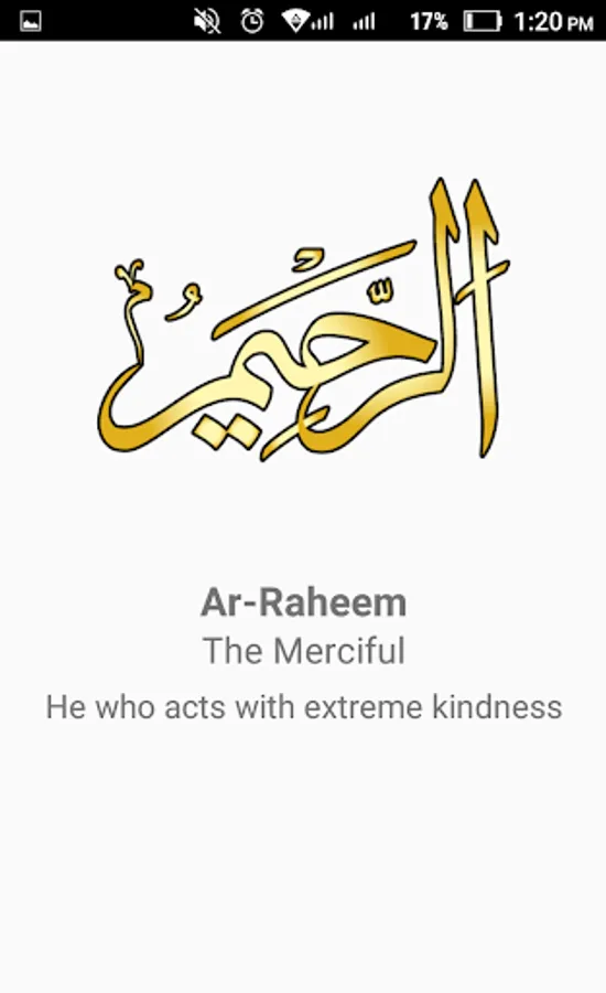 99 names of Allah are written in English and Arabic along with the meanings of each name in Arabic, English and Urdu. Install this android app today to get Asma ul husna, the beautiful names and attributes of Almighty Allah in English and Arabic along with the meanings of the names. Recite or memorize the 99 names of Allah any time any where from your phone.