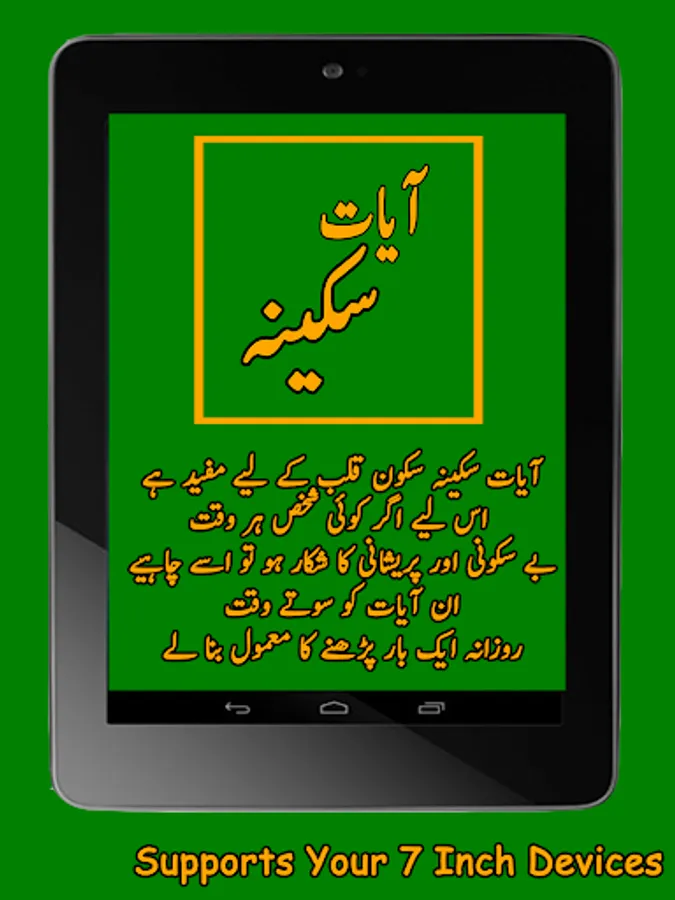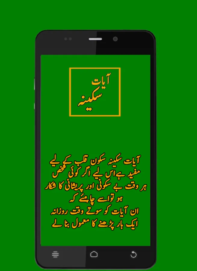 Quran Pak ki chand muqadas ayat sakoon qalab k liye buhat mufeed hain. Isi liye agar koi shaksh har waqat be sakooni aur preshaani ka shikaar ho to usay chaiye k wo sakoon e qalab k liye Ayate Sakeena ko sonay se pehlay parhnay ka mamool bana lay. In Sha Allah thoray he arsay main sakoon ki dolat se malamaal ho jaye ga. awal o akhir darood sharif parh lain kiun k darood sharif se israat barh jaye gay!