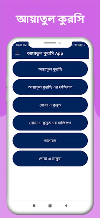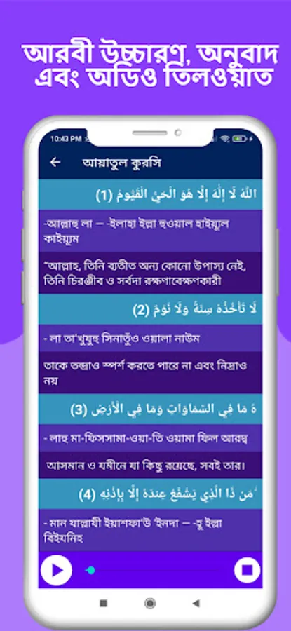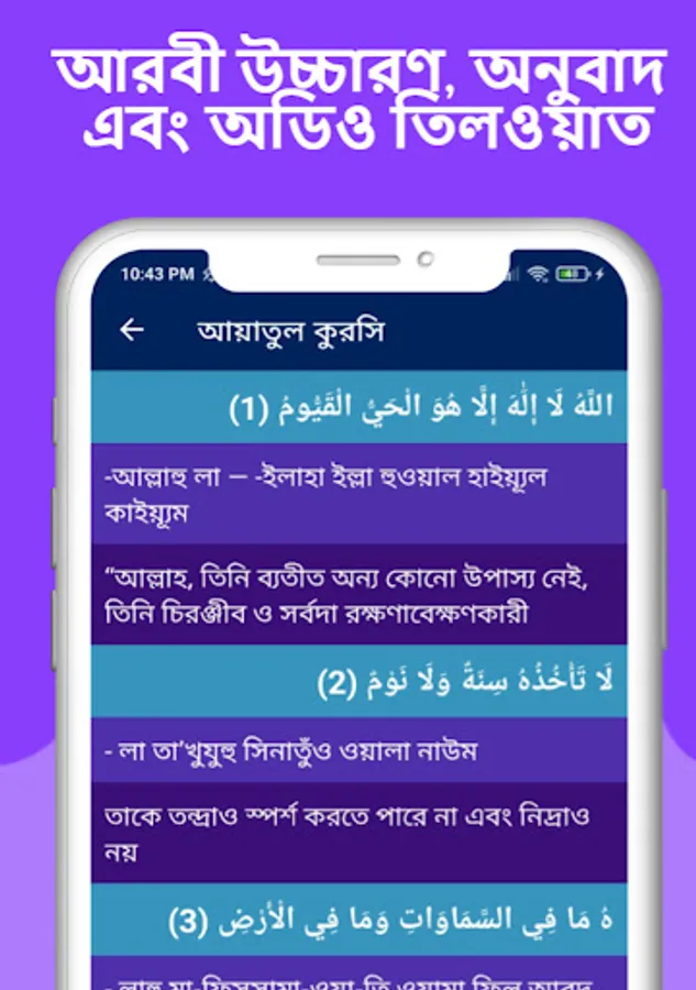 Welcome to our Ayatul Kursi application! This application is for all Muslims who want to read and understand Ayatul Kursi. Through this app, we developed it in a complete Bangla language, and reading and understanding Ayatul Kursi, Dua qunoot bangla, Dua masura, and Tashahhud will become easier.