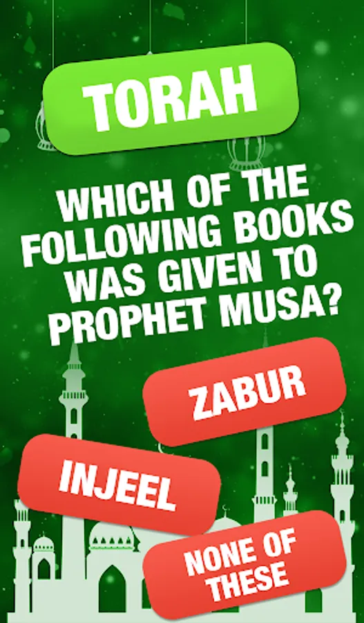 How well do you know the book of Allah? This entertaining game of knowledge with trivia questions is one of the most useful fun quizzes to take and fun quizzes for kids to learn about Islam, Al Quran, Muslim background, culture and history. This “Islamic quiz questions and answers” is a great educational game to help children learn important “Islamic knowledge”. If you enjoy free religious games for kids and adults to play together, this is a perfect educational quiz for the whole family, with many Islam information and interesting facts. Download Islamic General Knowledge Quiz Islamic Quiz Games and show how much your know about Muslim religions, culture and tradition.