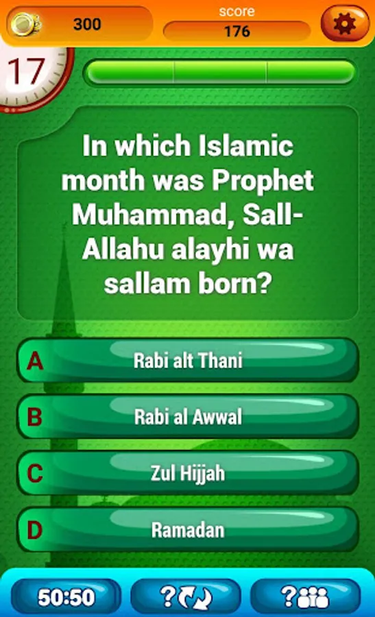 Use this amazing Islamic game for children and adults to instill the Muslim religious beliefs in the hearts of your little angels! At the same time, test your memory with Islamic Quiz Game and prove that you are a true Muslim who knows all about his/her religion! If you know a bit more about Allah, the concept of God in Islam, and you're familiar with the 99 names of Allah and their meanings, you are the right person to take this quiz! Islamic trivia game is waiting for you – do not hesitate to take it and have some fun with this Arabic quiz. Various quiz questions concerning Islam, Quran, Allah, Islamic dictionary items, Islamic history, prophets in Islam etc.