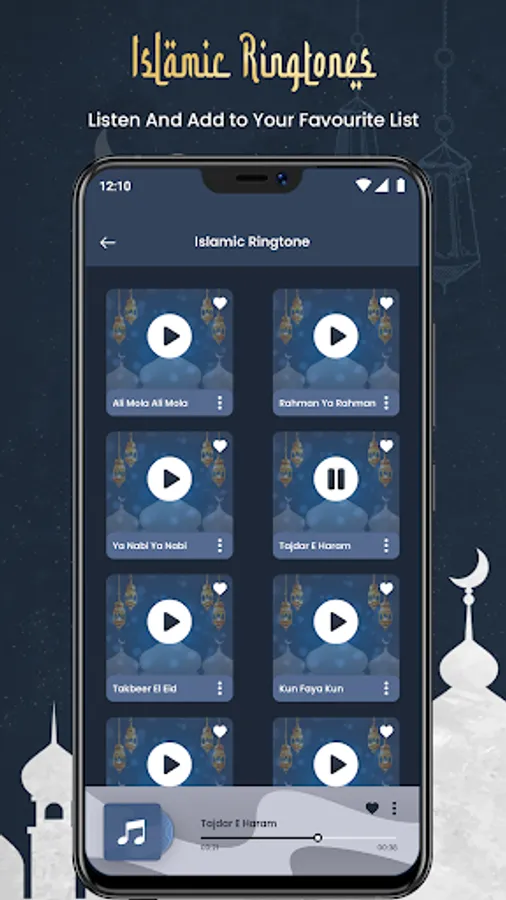 Islamic Naat Ringtone : Arabic Islamic Ringtones offer you some of the best religious songs and melodies that will deepen your faith in Allah. If you enjoy the exotic instruments you will definitely adore this amazing new islamic music ringtone : muslim ringtone app. There is nothing better than waking up every morning feeling refreshed and calm with these energizing spiritual tunes.