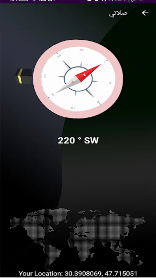البرنامج يحتوى على امكانية تحديد إتجاه القبلة