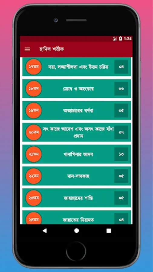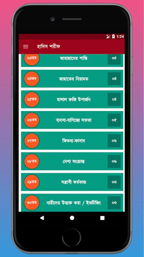 The hadiths of this app will play an important role in shaping a person's good conduct, good character and beautiful life including manners. Hadith is arranged in a chapter-based way based on 30 important topics in this app.