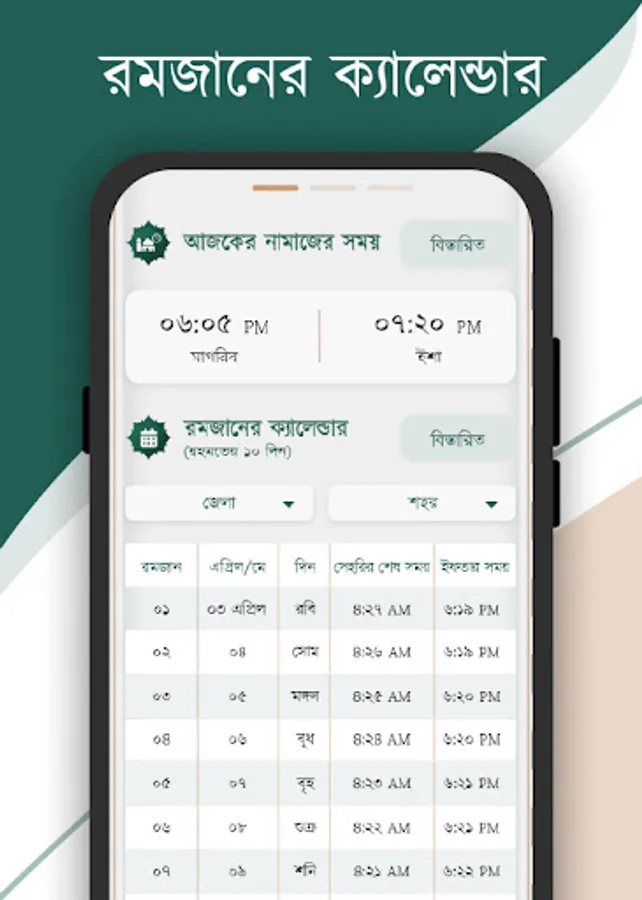 • Contains Ramadan schedule 2022. It will give precise Sehri, Iftar time from Islamic Foundation of Bangladesh.