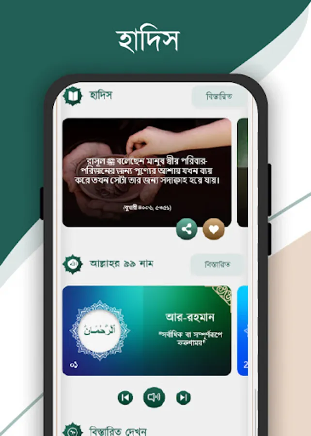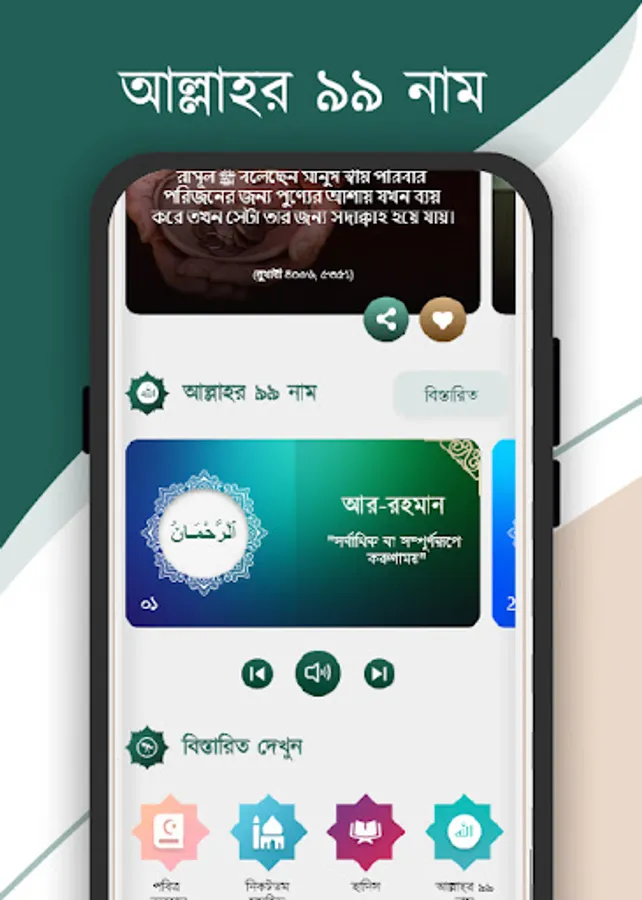 • Eilm application gives wonderful Quran sound recitations of all Surah/Verses of Al Quran with Bengali interpretations.