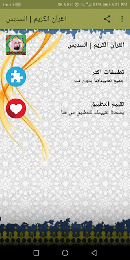 This application includes the entire Holy Qur’an surahs with audio without the need to connect to the Internet