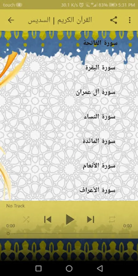 The Holy Quran is complete with the voice of Sheikh Abdul Rahman Al-Sudais without Net