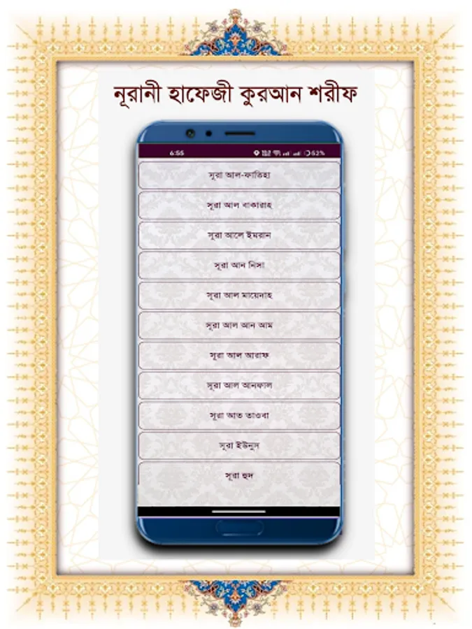 Noorani Hafezi Quran Sharif This is the holy book of Islam, which is the word of Allah. It is said to be one of the finest works of Arabic classical literature. The Qur'an is first divided into chapters (suras in Arabic) and the chapters (suras) are divided into verses.