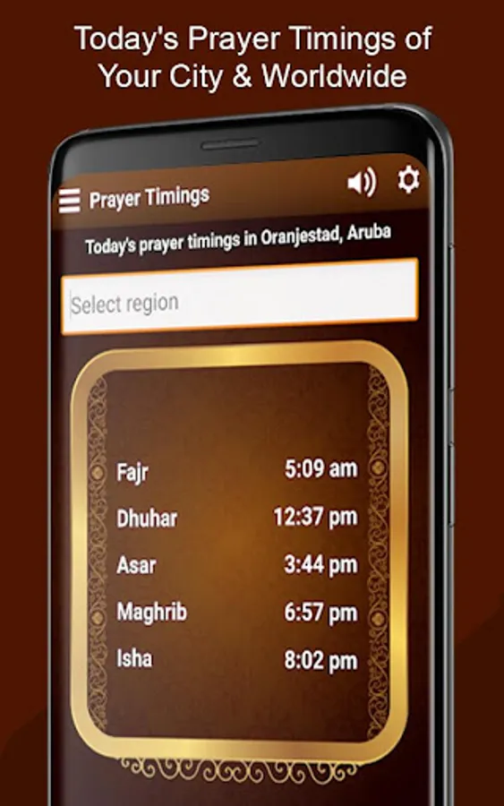 * Show five Muslim Prayer Times, Fajr, Dhuhr, Asr, Maghrib, and Isha’a