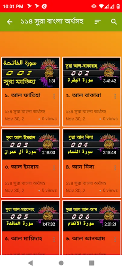 Al-Qur'an video with Arabic Bangla and Erezi translation and Quran Sharif 30 para Bangla pronunciation is provided. In this condition, when you read the text, there is no extra strain on the eyes and when you watch the video, you can reduce the strain on the eyes by using the dark mode.