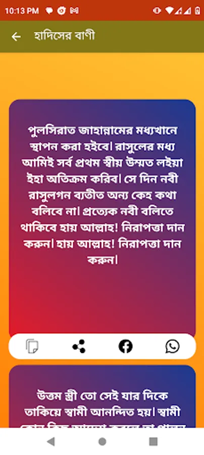 In this category, there are videos with Bengali meaning of recitation of verses 1 to 30 of Qur'anul Kareem in the voice of the world's best reciters. The app provides audio recitations of the Quran by different Qari (reciters) in different styles and pronunciations.