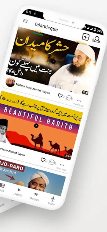 Islamicque app provides a platform where everyone post and sees Islamic videos, books, quotes, statuses, and audio.