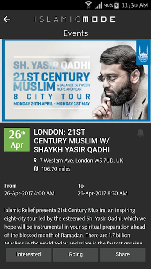 Islamic Mode app has features like Prayer times/Adhan notifications, Quaran with translation, Hadith, Hisnul Muslim, Islamic Stories, Events, Mosque Locator/Events, Halal Places/Reviews, Services and more.
