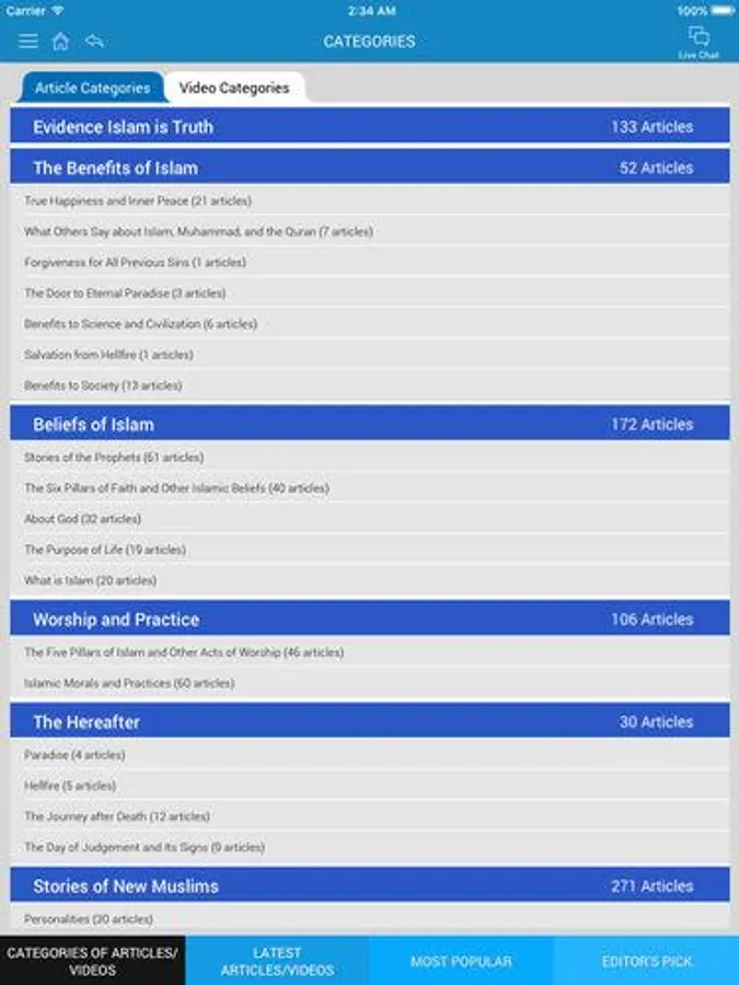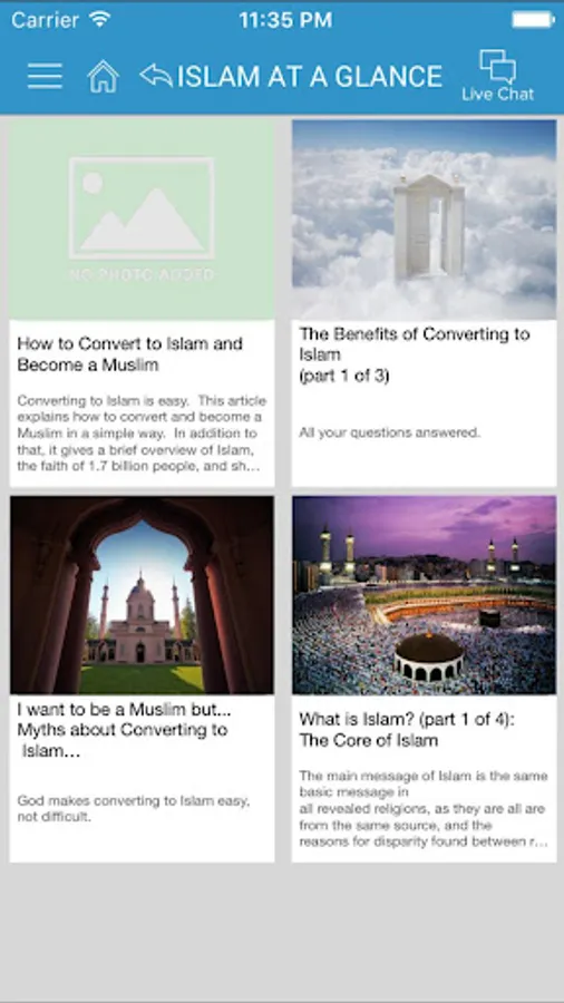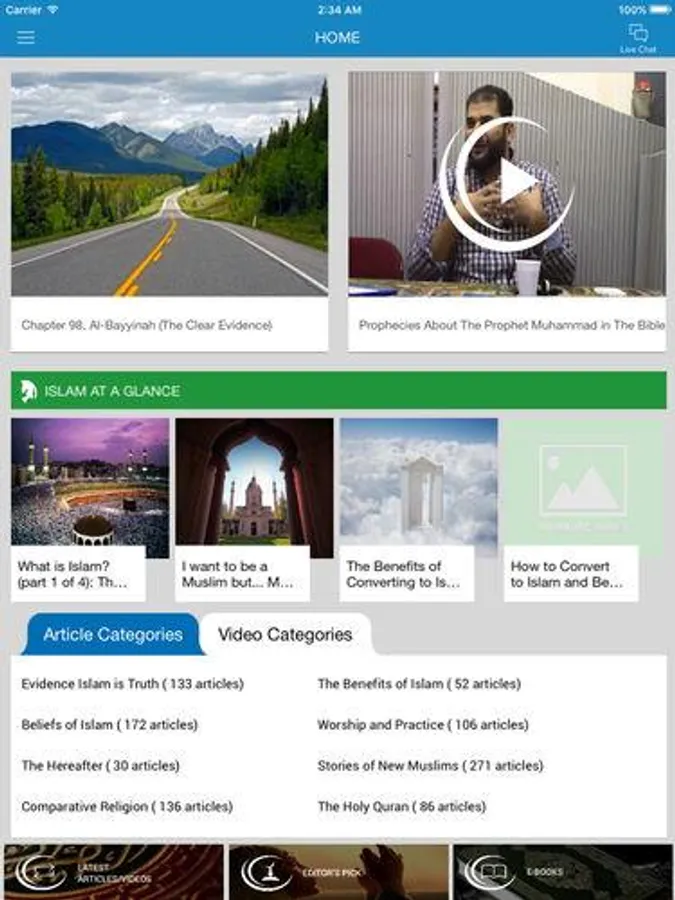 This app is for people of various faiths who seek to understand Islam and Muslims. It contains a lot of brief, yet informative articles about different aspects of Islam. New articles are added every week. Also, it features Live Help through chat.