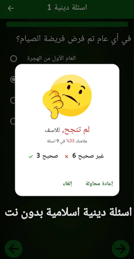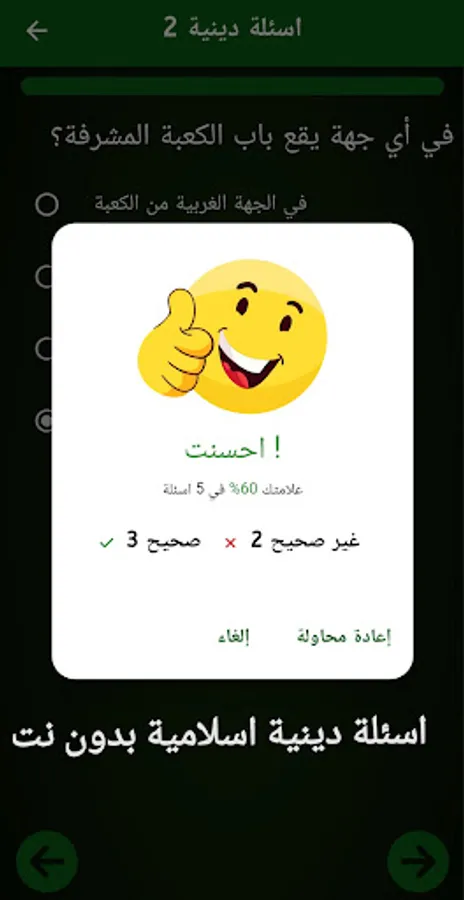 In general, the "Islamic Religious Questions Offline" application is an ideal choice for users who want to improve their Islamic religious knowledge and enjoy a useful and fun game of religious questions without the need to connect to the Internet.
