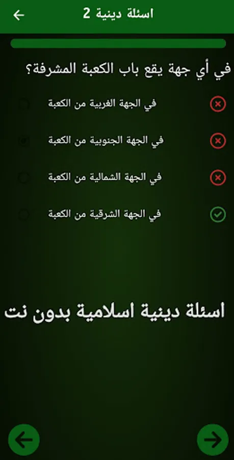 The "Islamic Religious Questions Offline" application is an ideal choice for users who want to improve their Islamic religious knowledge and enjoy a fun and useful game of religious questions without having to connect to the Internet. Religious Questions and Answers This application is also an excellent choice to help enhance the religious, cultural and educational awareness of users.