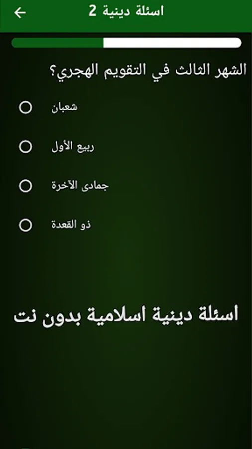 3- Different levels: The application contains different levels of difficulty, easy religious questions allowing users to choose the level that suits them best based on their level of religious knowledge.